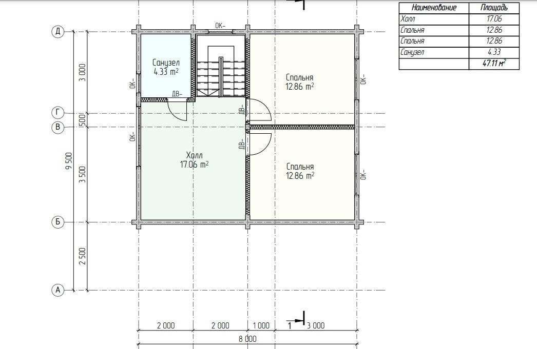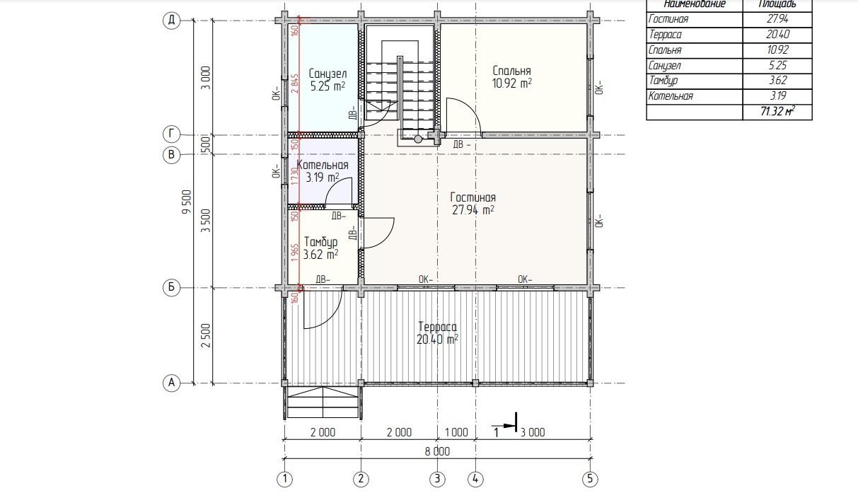 2. Домокомплект из клееного бруса - сечение бруса 80х140 мм