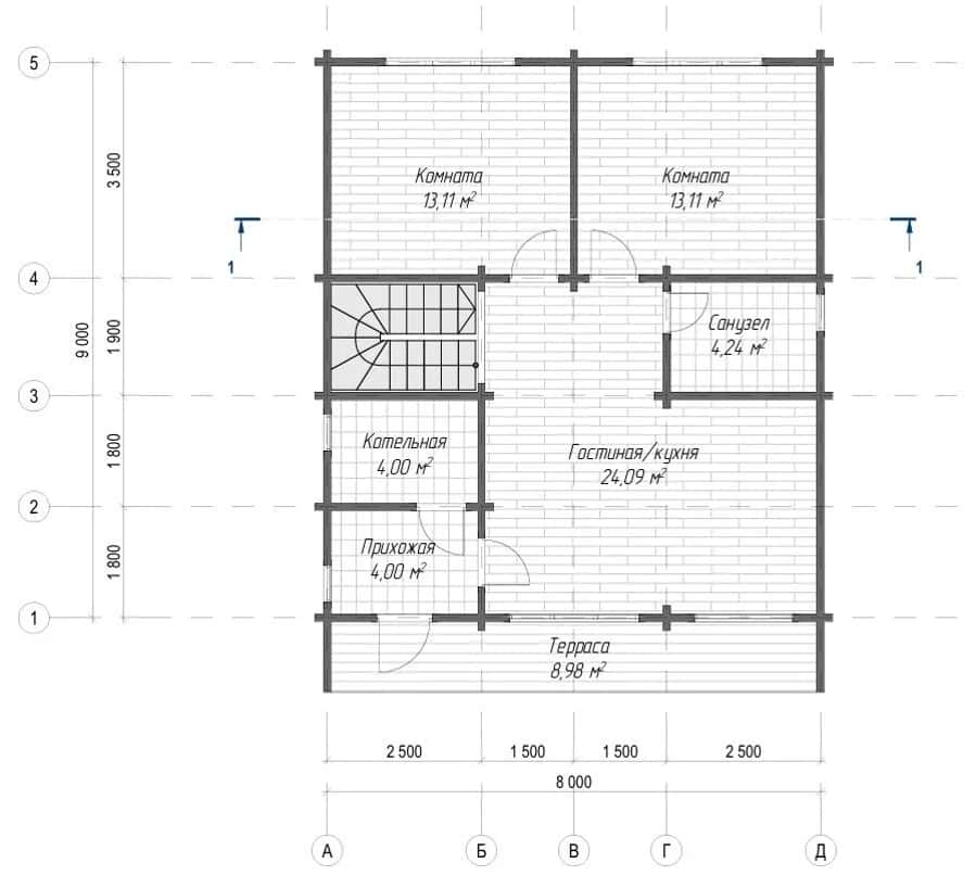 2. Домокомплект из клееного бруса - сечение бруса 120х190 мм